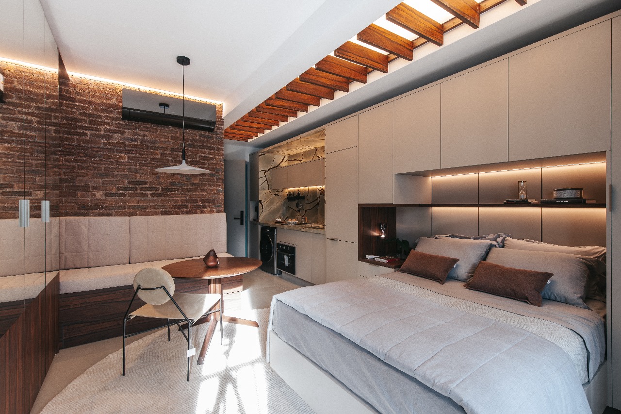 “O Ambiente nasce da compreensão de que o modo de viver mudou. Muitos clientes 50+ estão repensando a casa: querem praticidade, proximidade com um parque, com o comércio, com o que é essencial. São pessoas que não querem abrir mão da qualidade de vida, mas também não querem espaço ocioso”, comenta Marcelo. “Mas o compacto bem resolvido também conversa muito com o jovem profissional, que valoriza tempo, autonomia e a possibilidade de morar perto do que usa todos os dias.”