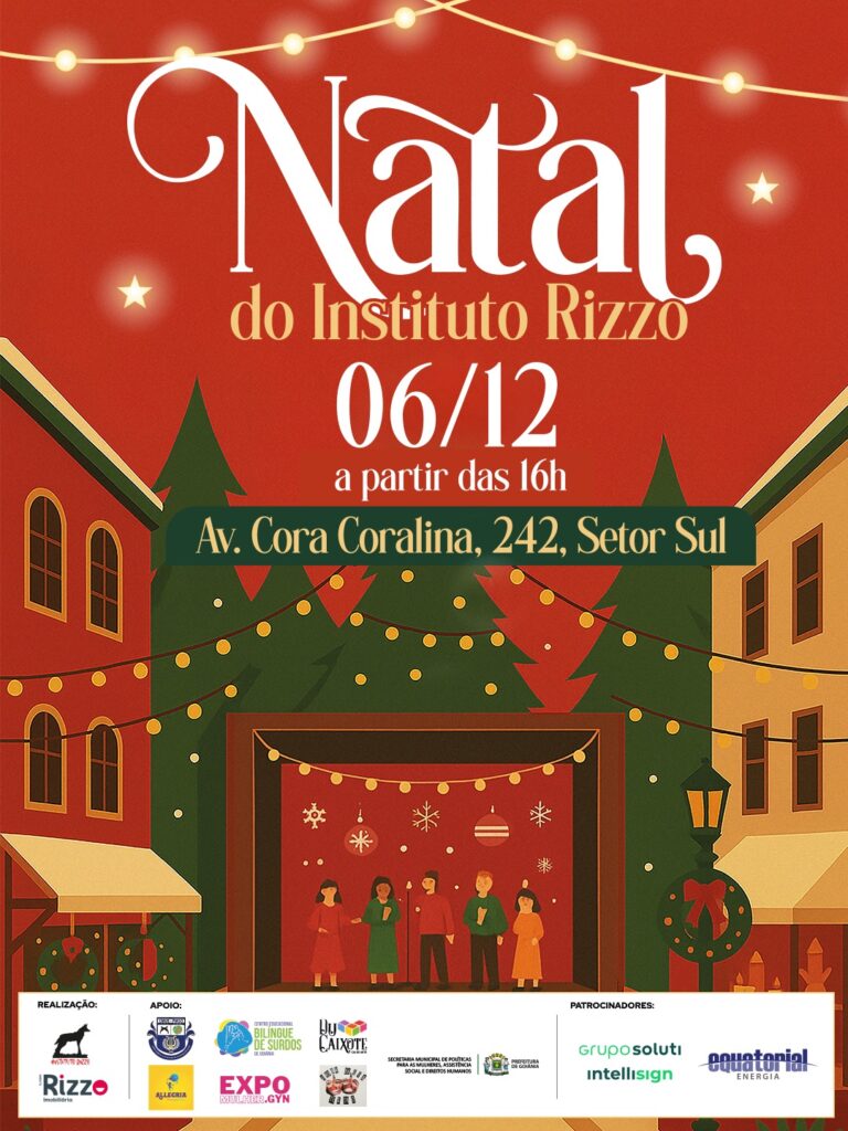 O Natal do Instituto Rizzo chega à sua 17ª edição reunindo arte, cultura e solidariedade em uma programação gratuita e aberta ao público. No dia 6 de dezembro, a partir das 16 horas, a Avenida Cora Coralina, no Setor Sul, será novamente transformada em um verdadeiro conto de Natal ao ar livre, com apresentações de teatro, música, improviso, coral, banda e um show de luzes que promete encantar toda a cidade.