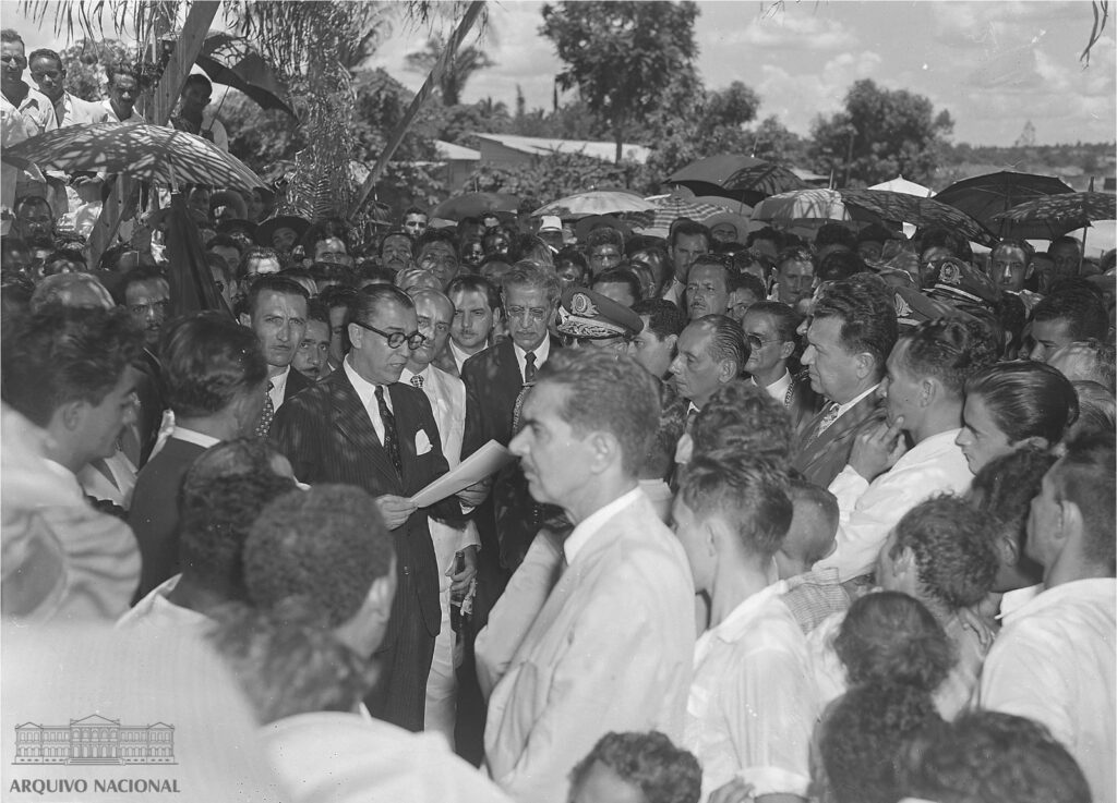 O contexto nacional não dava folga, tendo uma expansão no quintal de Goiás – a criação de um novo Distrito Federal, com as obras a todo vapor em Brasília. Juscelino Kubitschek avançava no cronograma da nova capital – a inauguração estava marcada para abril do ano seguinte. O Centro-Oeste era obra. E Goiás, que abastecia as frentes de trabalho com arroz, feijão e carne, sentia, na prática, o que significava produzir sem escala e sem crédito, mas afetado por um aquecimento de negócios inédito até então.