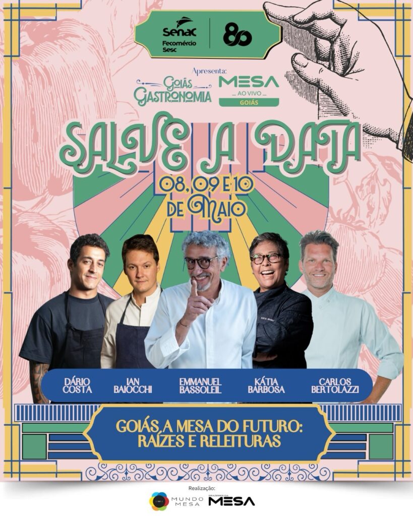O festival Goiás Gastronomia 2026 já tem data, local e tema definidos. Neste ano, o evento será realizado entre os dias 7 e 10 e 14 e 17 de maio, com o tema “Goiás, a Mesa do Futuro: Raízes e Releituras”. A proposta é unir tradição e inovação, destacando sabores, ingredientes e experiências que ajudam a contar a identidade gastronômica do Estado. O Goiás Gastronomia é realizado pelo Senac Goiás, por meio da Fecomércio Goiás e do Sesc Goiás, com apoio da Prefeitura de Goiânia, do Governo de Goiás, do Conselho Empresarial de Turismo da Fecomércio (Cetur) e do Sebrae.