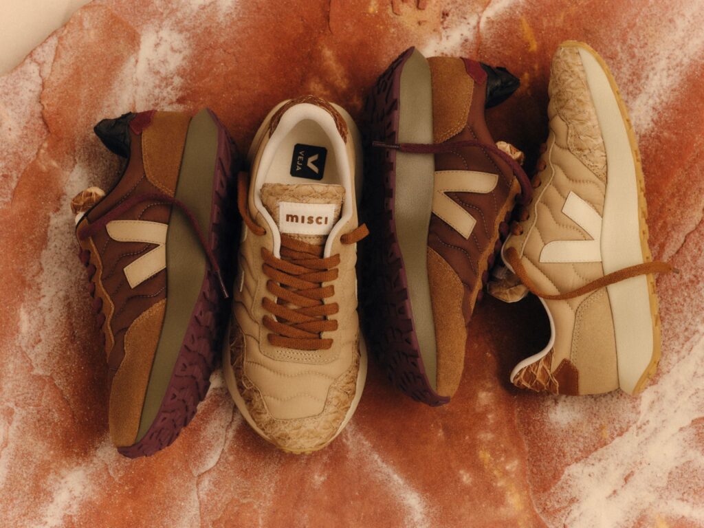 A colaboração entre VEJA e MISCI resulta em um tênis que une design, território e sustentabilidade. Inspirado no modelo Paulistana, o lançamento traz releituras com materiais como couro de pirarucu e referências visuais que percorrem diferentes biomas brasileiros. O modelo foi apresentado no desfile da MISCI no Rio de Janeiro e chega ao mercado com proposta que conecta moda contemporânea e responsabilidade socioambiental.