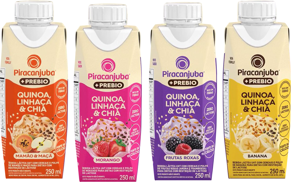 Piracanjuba +Prebio Quinoa, Linhaça e Chia: fibras prebióticas, zero lactose e zero açúcar para o dia a dia